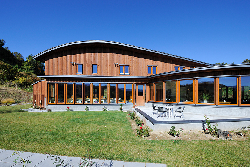 | 近年、経済成長の鈍化と農業従事者の減少に伴い、国の地産地消法に基付く6次産業化事業第一号として、「OcciGabiワイナリー」が事業化された。2012年に第一期工事の本館棟(醸造工場、ホール棟、レストラン棟、住居棟)が開始した。冬季の多雪と気温の低下に備え、木造大断面構造による堅牢な躯体形成と、高気密・高断熱による屋根外壁の分厚な構成を基本とし、周囲の穏やかな丘陵地形に同化することを意図した流線形の建物形態が、ワイン谷の将来のシンボルとなるよう設計されている。 北海道余市町(2013年) |